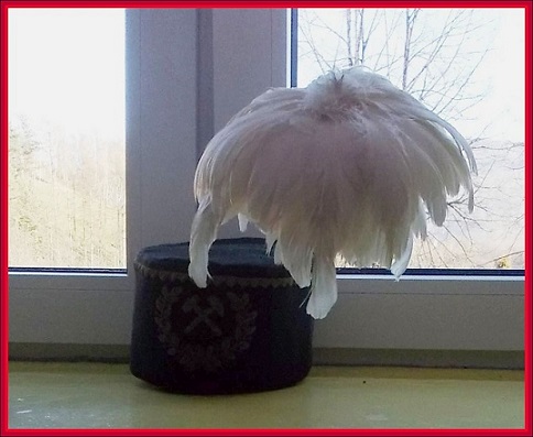 p. Jadzią wykonała czapki górnicze, oraz pozowała w prawdziwym "czako"z białym pióropuszem. Starsze grupy rysowały węglem przedstawiając pracę Górników.