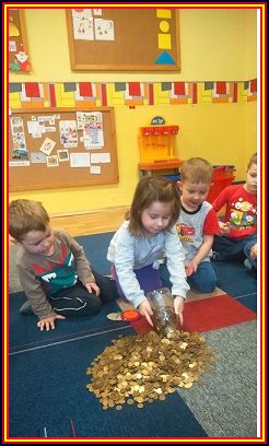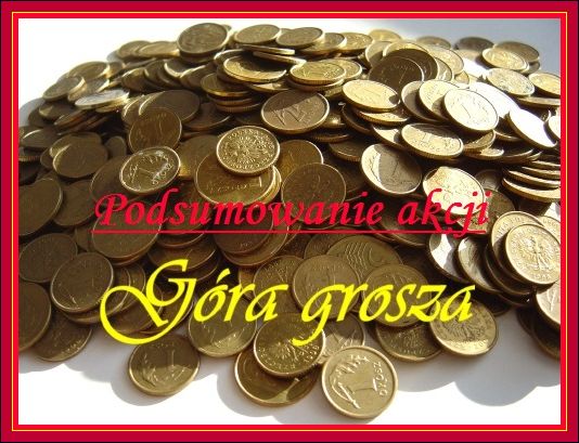 Zakończyliśmy akcję „Góra Grosza”. Każda grupa osobno zbierała monety i wrzucała je do skarbonek w swoich salach. Grupa I uzbierała 52 złote 64 gr., Grupa II - 107 złotych 77 gr., Grupa III - 69 złotych 16 gr., Grupa IV - 63 złote, co w sumie dało kwotę : 292 złote 57 groszy. Zebrane pieniądze zostaną przekazane do towarzystwa "Nasz Dom", które jest głównym organizatorem akcji.